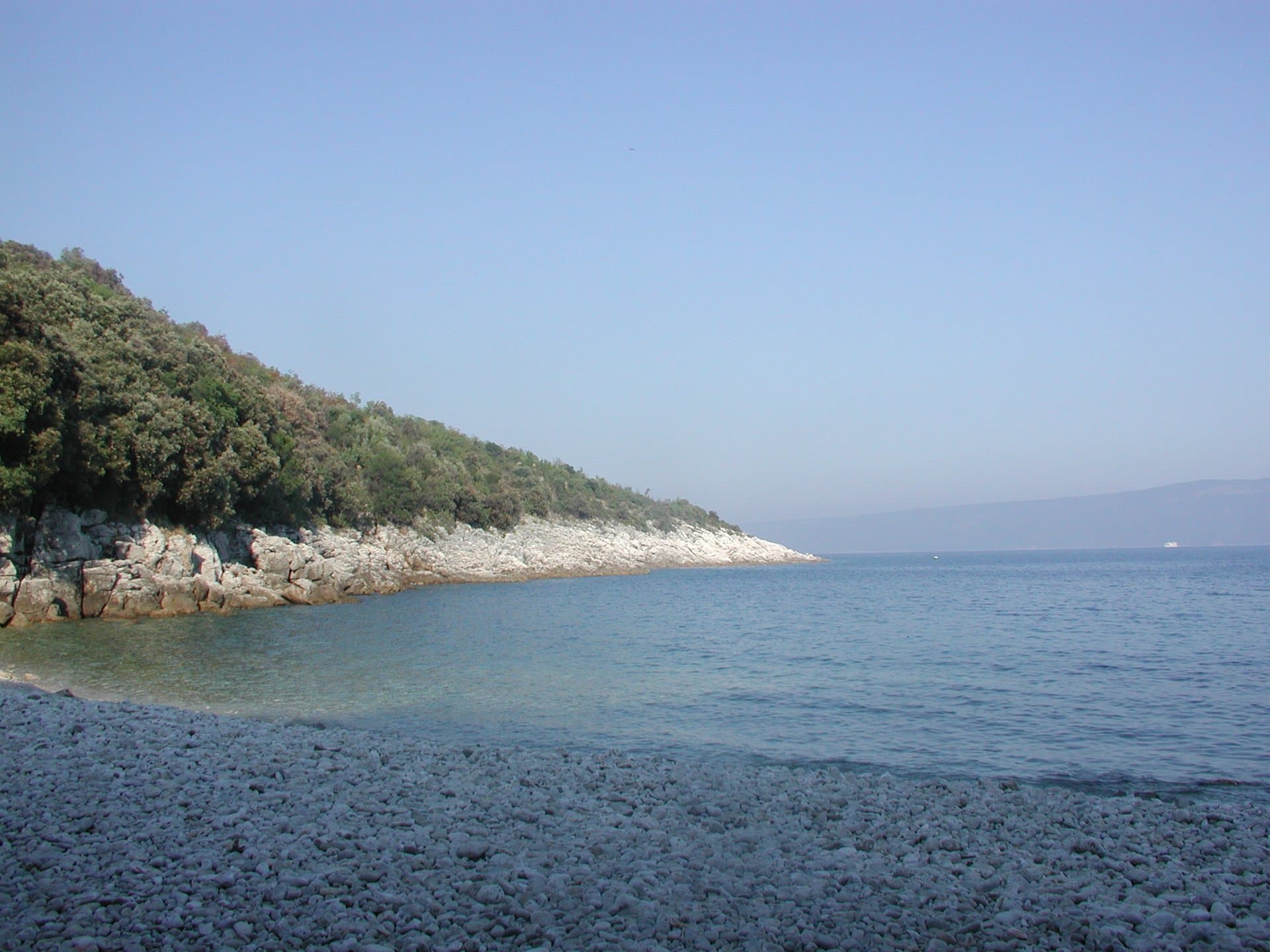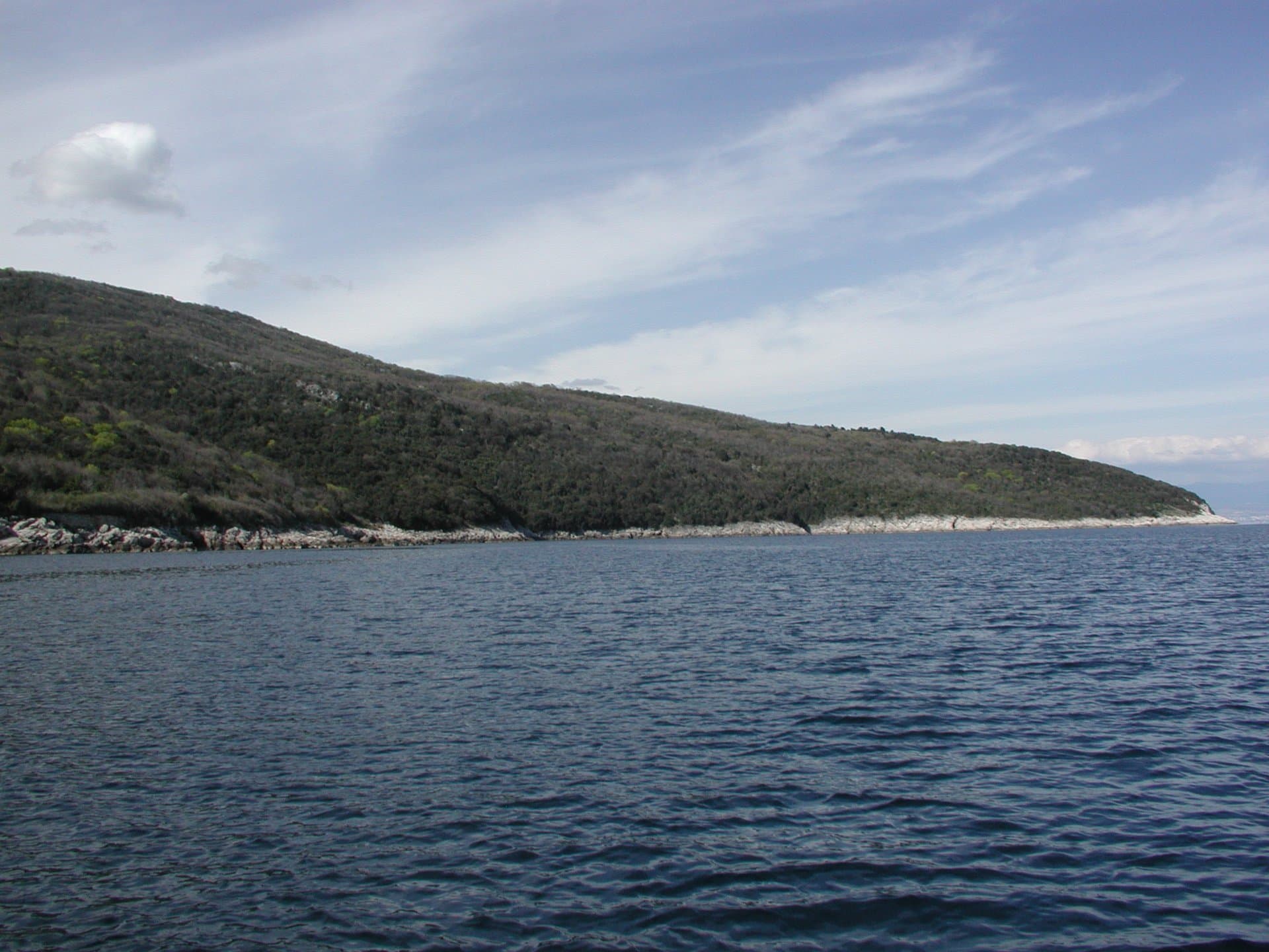 Unique opportunity – 1.182 m² building land with unobstructable sea view only approx. 170 m from the sea – 2nd row from the sea Istria east coast, Jurasi, about 25 km south of Lovran and Opatija – on this side of the coast the green overgrown slopes reach almost down to the sea. Beautiful villages with Mediterranean flair line the coastal road to Rijeka. The properties are very quietly situated on a wooded slope, only about 15 minutes by boat from the island of Cres. Beautiful, unspoiled coastline with many small bays and clear, clean water. Unique opportunity, because plots of land directly by the sea, designated as normal residential area, no longer exist in all of Istria. Approx. 170 m from the sea – approx. 1.181 m2 building land, divided into 2 plots – possibility to buy separately a plot of approx. 353 m2( buildable with one house) and of approx. 829 m² (buildable with 2 houses). The building land cannot be built on at the moment, because the roads still have to be ceded to the municipality by the owners. The urban plan is ready, but the land is not yet developed.