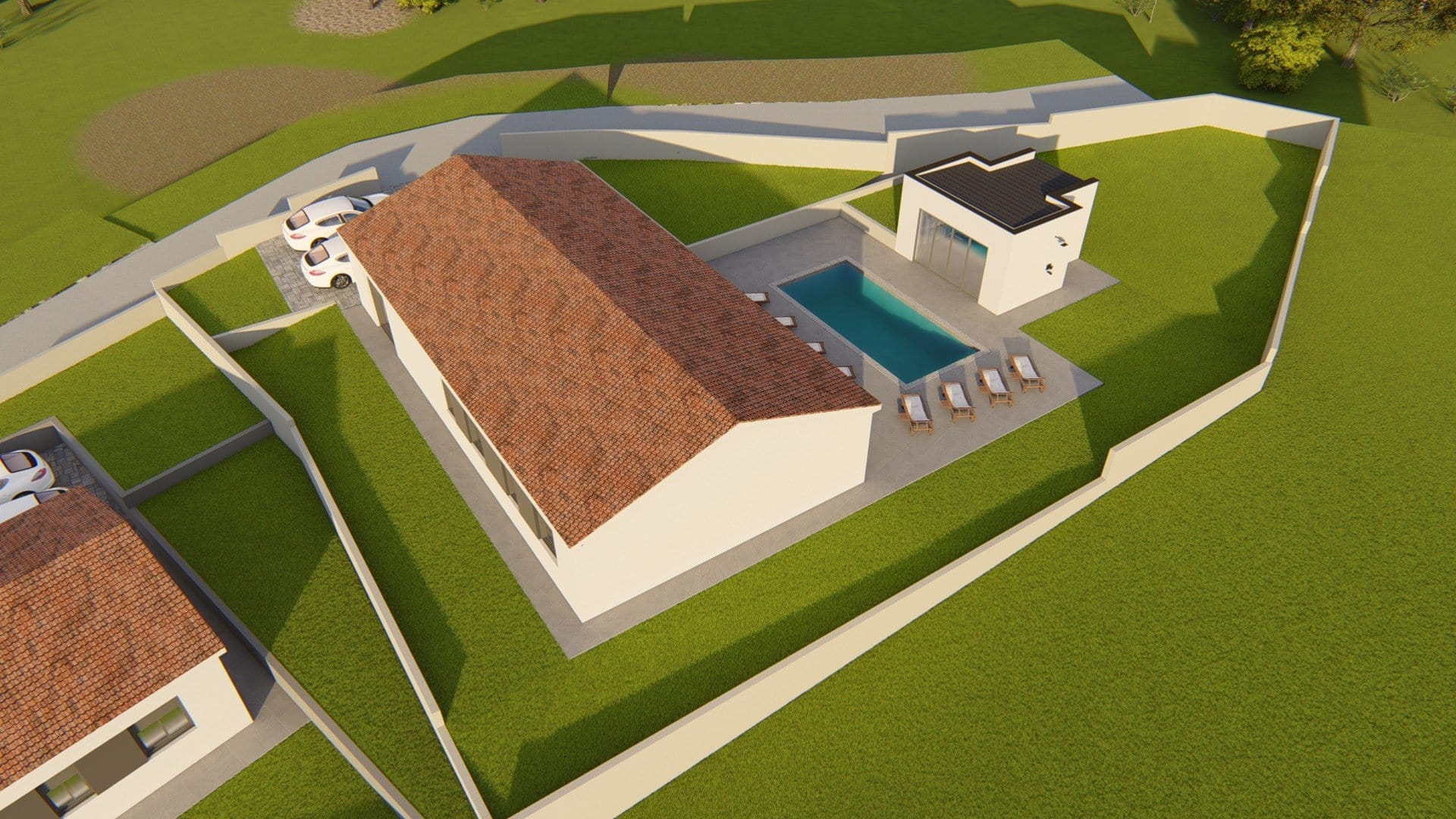 Surroundings Labin – building land with building permit – approx. 8 km from the sea – for sale Located in a small town – quiet location – after Krsan about 2 km with shops, cafes …. – to the sea about 8 km – to Labin about 16 km, very good infrastructure. Building land in Kršan, area 875 m2, with a building permit for building a villa with a pool (prefab or normal construction) Water and utility contributions are included in the price.