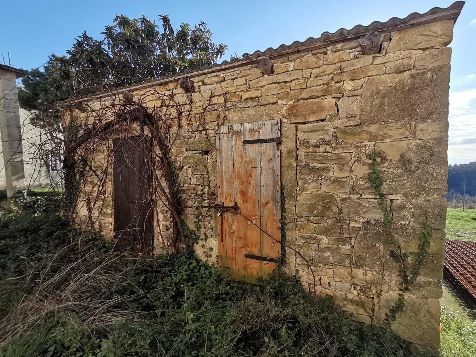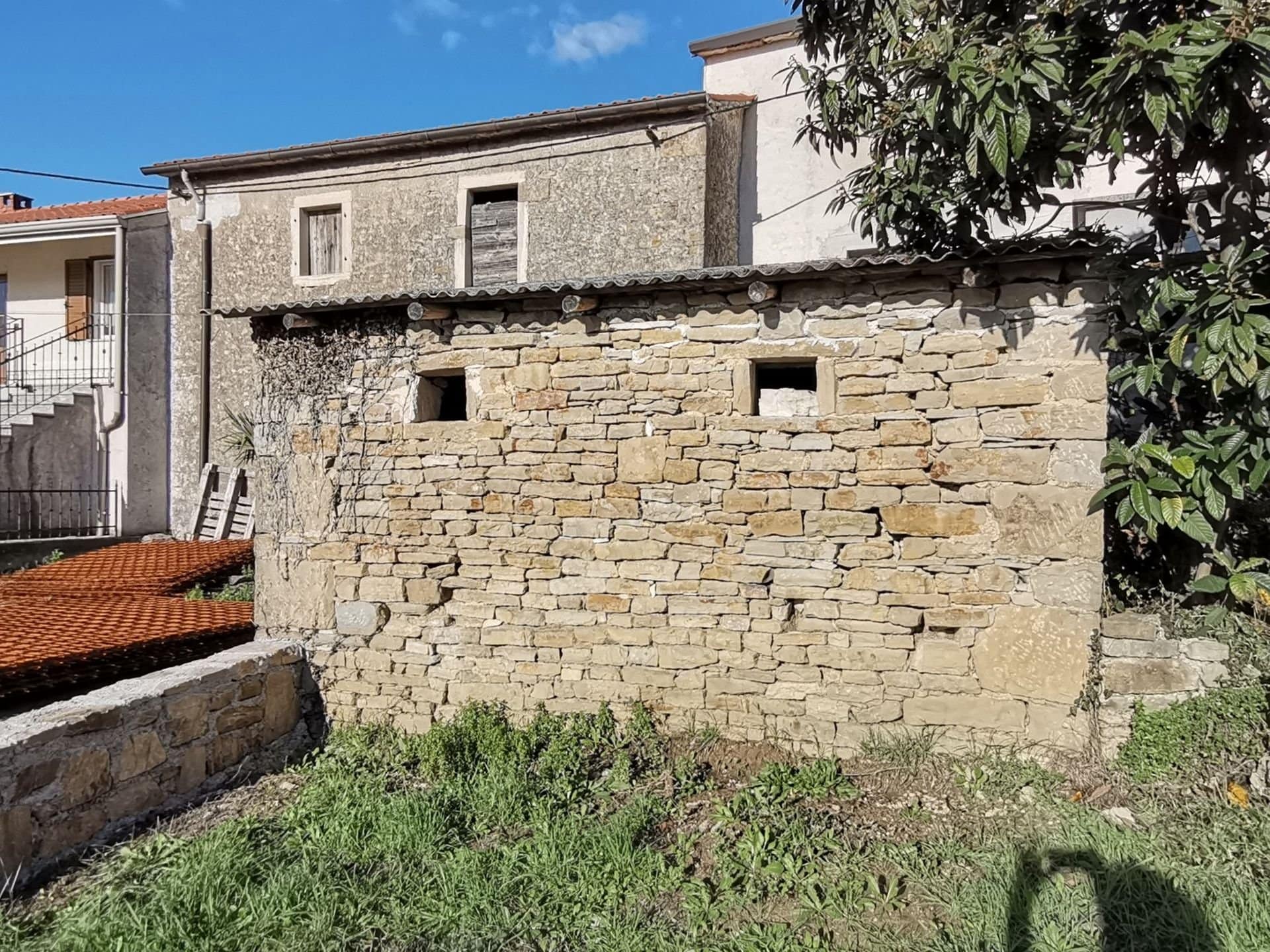stone houses in need of renovation – Buje – sea view – for sale approx. 15 km from the sea – approx. 5 km from Buje, place with good infrastructure, restaurants, cafes, shopping – sea view Natural stone houses in need of renovation, corner house, living area/usable area in total approx. 196 sqm House 1: entrance, living room, kitchen with wood stove, bathroom. 1st floor: 3 bedrooms House 2: 1 room, 1st floor: 1 room. In the bedrooms wooden floors and ceilings, in need of complete renovation, electricity and water in the house. The garden has a size of about 320 m², there are 2 small detached stone houses (stable).