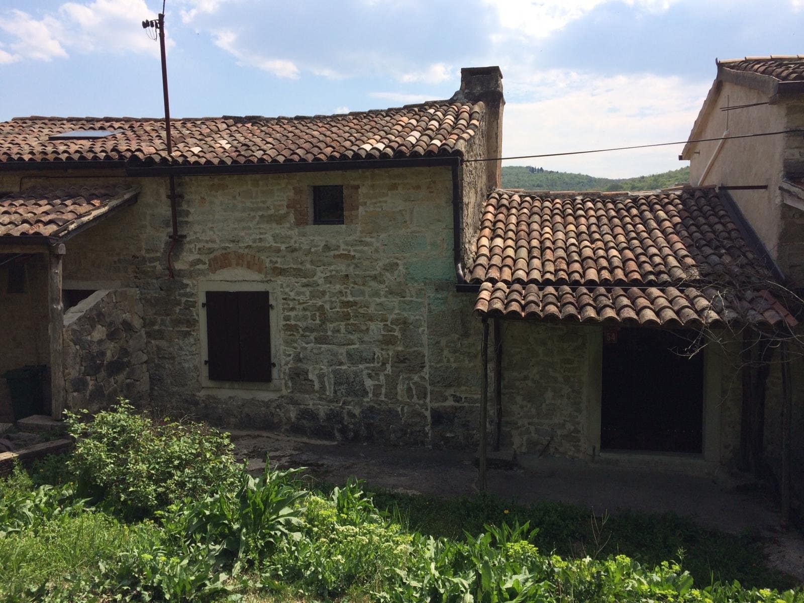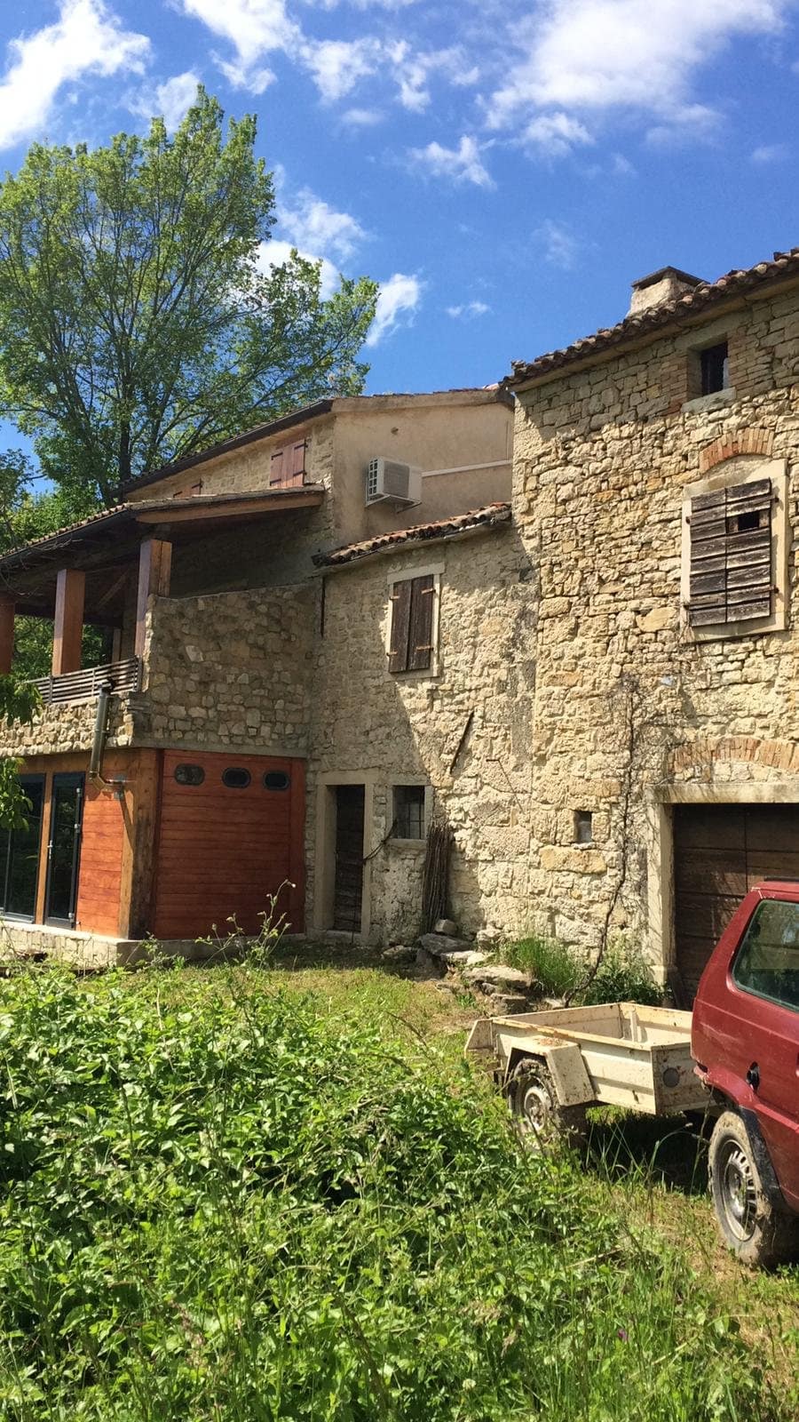 Near Motovun – Old stone house, in need of renovation, with large garden, very quiet location About 4 km from Motovun and about 25 km from the sea, in a very quiet location, is this charming small stone house ( row house) with about 80 m2 living space and with a garden of 1620 m2. The house consists of basement, first floor and attic. In the basement there are two rooms used as storage, on the first floor there is a kitchen, a bathroom and a bedroom and in the attic there is a second bedroom. The garden of 1.520 m2 is agricultural land, about 100 m2 of it is building land (about 50 m2 in front and about 50 m2 behind the house). The house has electricity and water, but needs complete renovation.