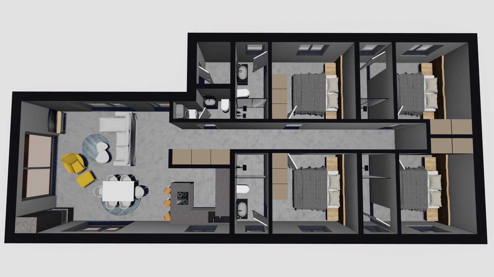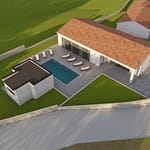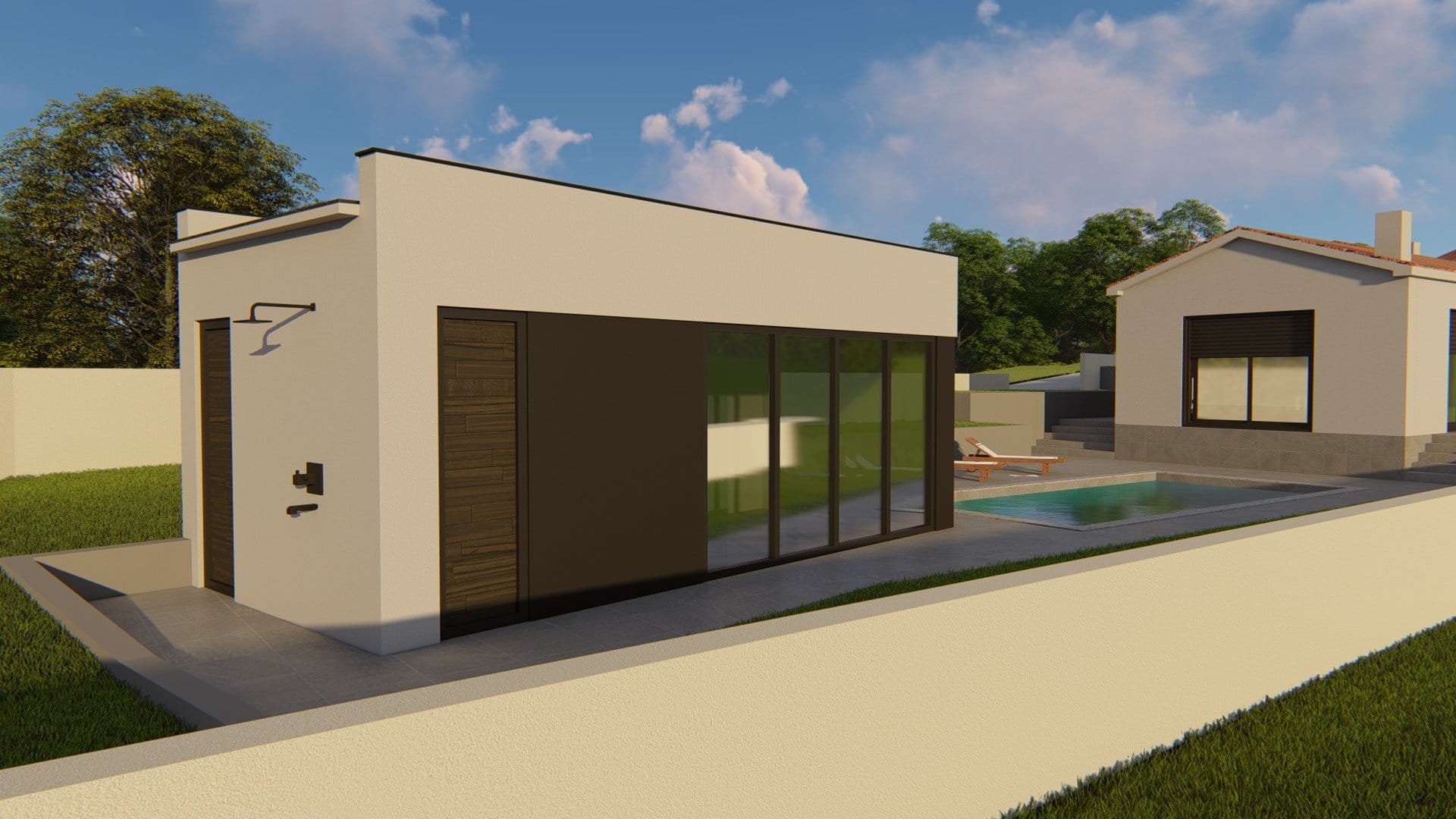 Umgebung Labin – neu gebauter Bungalow mit Pool – ca. 8 km vom Meer – zu verkaufen In einem kleinen Ort gelegen – ruhige Lage – nach Krsan ca. 2 km mit Einkaufsmöglichkeit, Cafés …. – zum Meer ca. 8 km – nach Labin ca. 16 km, sehr gute Infrastruktur. Freistehender Bungalow mit einer Nettowohnfläche von ca. 110 m², Fertighaus, Baubeginn ca. – Mai/Juni 2023. Eingangsbereich, Abstellraum, WC mit Waschmaschinenanschluss, Wohnzimmer mit Küche und Essbereich, 4 Schlafzimmer jeweils mit Bad (en suite), das Grundstück hat eine Größe von 892 m² mit einem Pool und einer Sommerküche mit WC, ca. 20 m². Den Preis von € 436.000,00 erhält man, wenn man das Haus vom Plan erwirbt mit der Möglichkeit die Ausstattung auszuwählen, die Bezahlung erfolgt nach Bauphasen. Bei schlüsselfertiger Erstellung ist der Preis € 495.000,00.