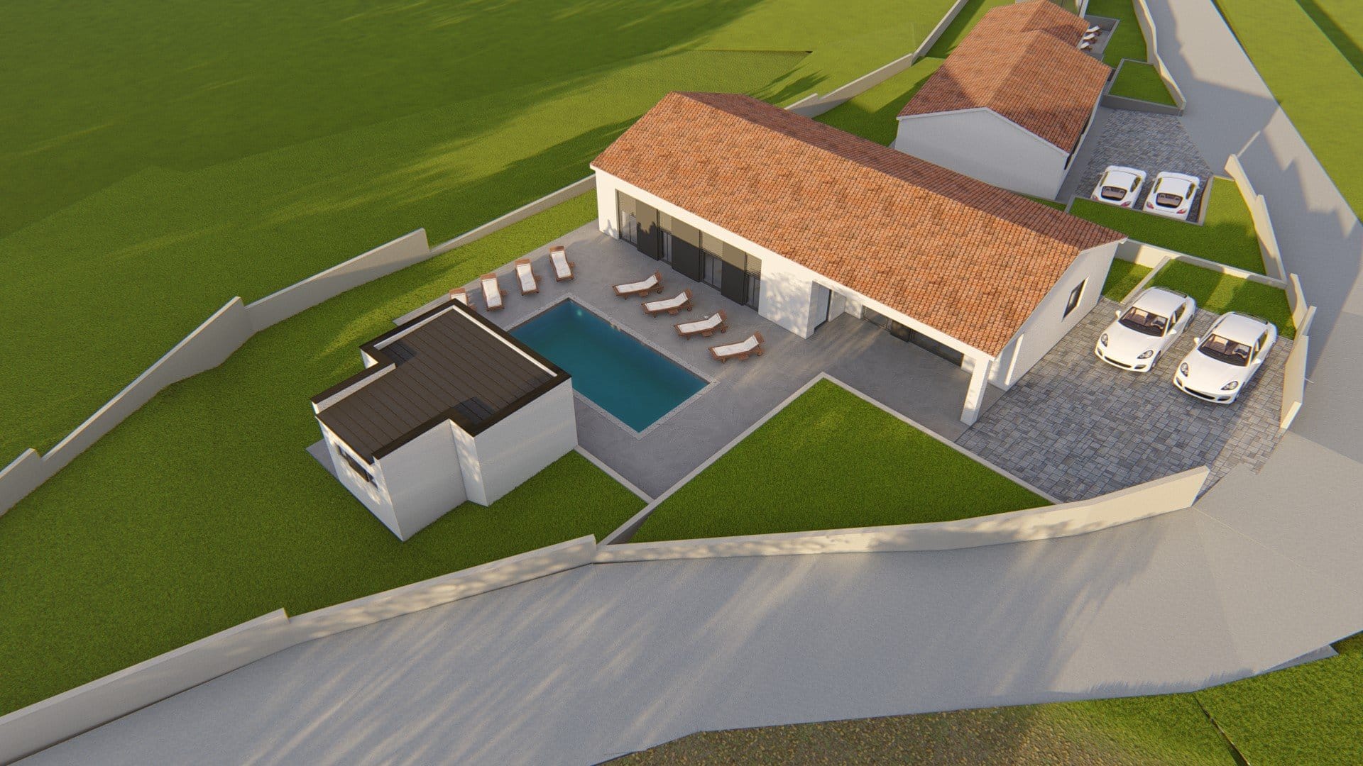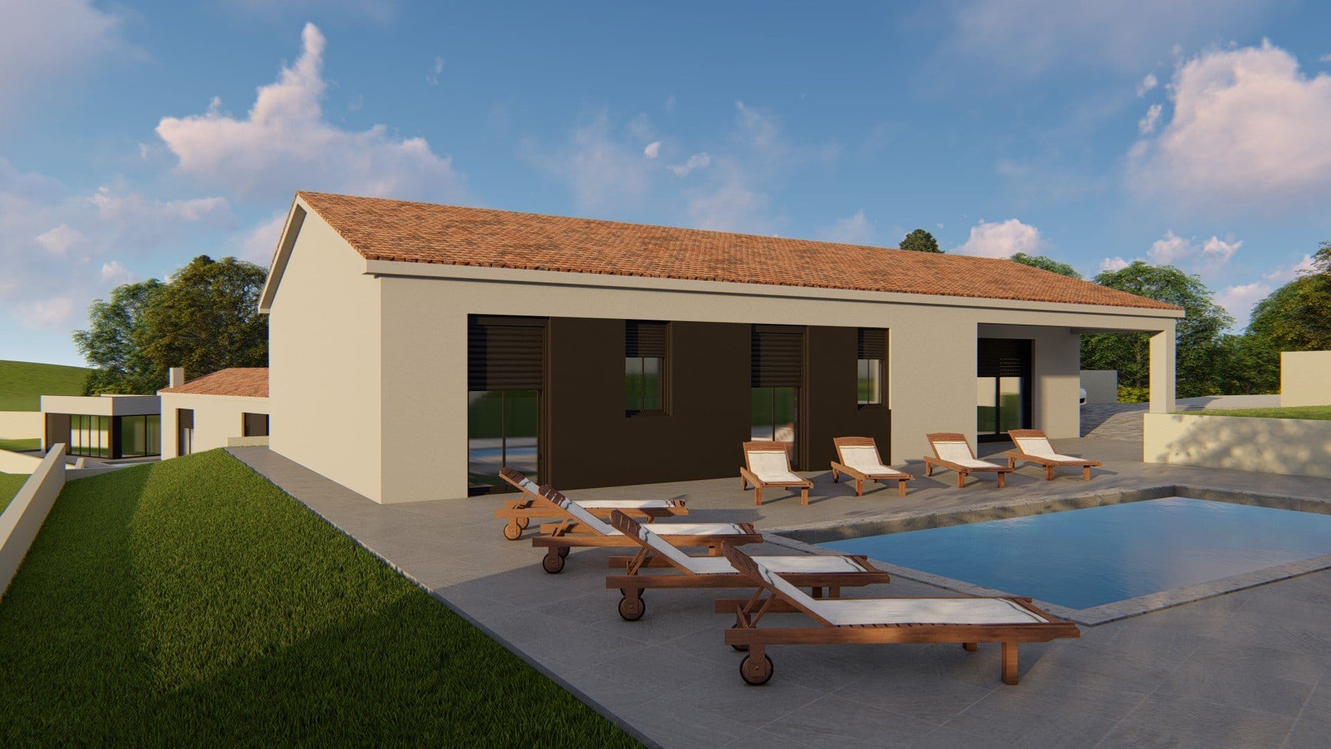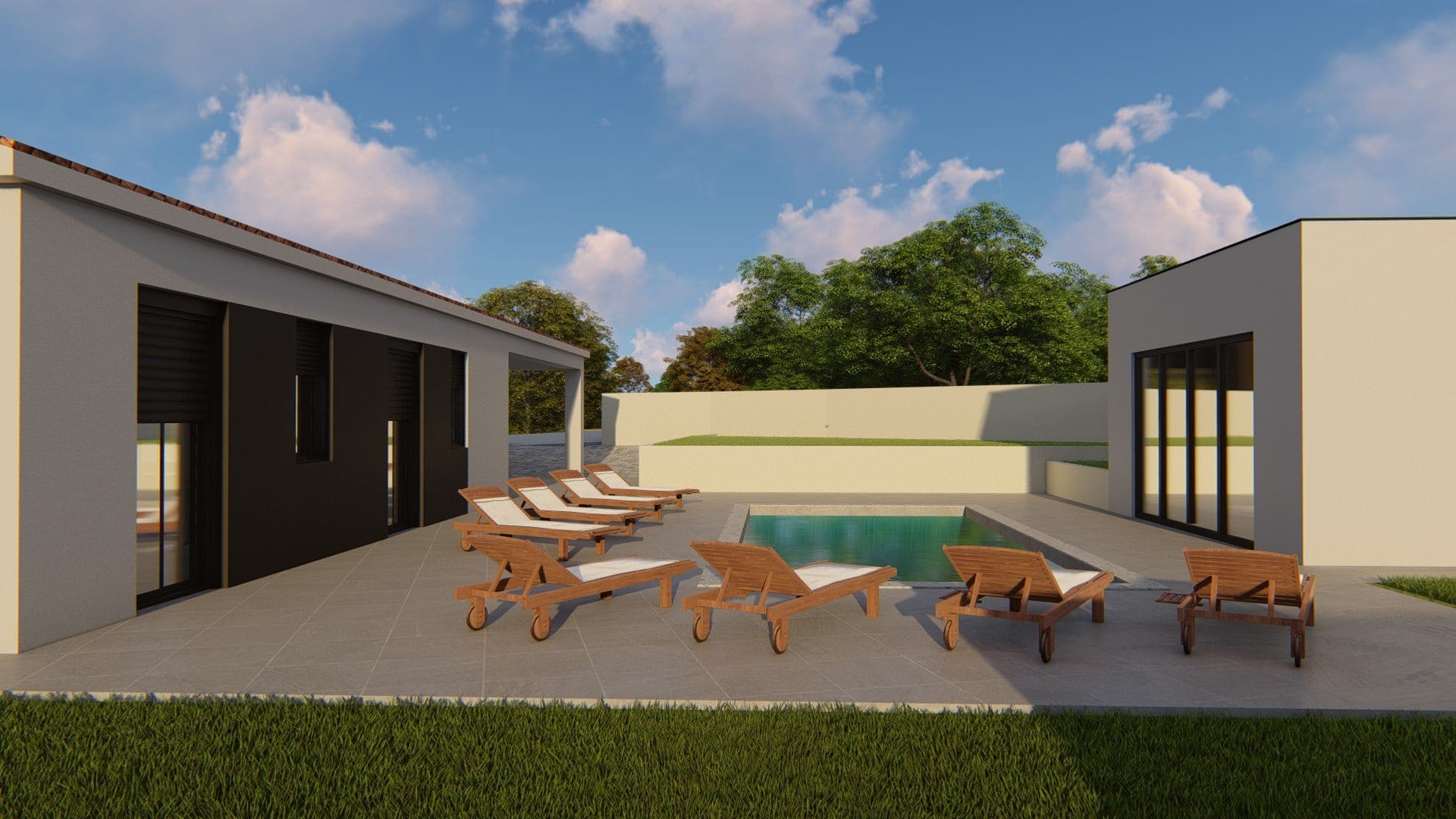 Umgebung Labin – neu gebauter Bungalow mit Pool – ca. 8 km vom Meer – zu verkaufen In einem kleinen Ort gelegen – ruhige Lage – nach Krsan ca. 2 km mit Einkaufsmöglichkeit, Cafés …. – zum Meer ca. 8 km – nach Labin ca. 16 km, sehr gute Infrastruktur. Freistehender Bungalow mit einer Nettowohnfläche von ca. 130 m², Fertighaus, Baubeginn ca. – Mai/Juni 2023. Eingangsbereich, Abstellraum, WC mit Waschmaschinenanschluss, Wohnzimmer mit Küche und Essbereich, 4 Schlafzimmer jeweils mit Bad (en suite), das Grundstück hat eine Größe von 895 m² mit einem Pool und einer Sommerküche mit WC, ca. 20 m². Den Preis von € 440.000,00 erhält man, wenn man das Haus vom Plan erwirbt mit der Möglichkeit die Ausstattung auszuwählen, die Bezahlung erfolgt nach Bauphasen. Bei schlüsselfertiger Erstellung ist der Preis € 510.000,00.
