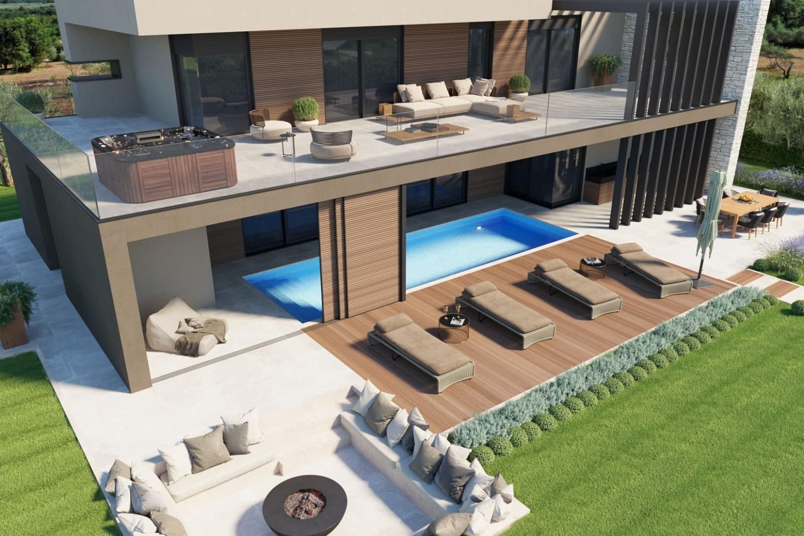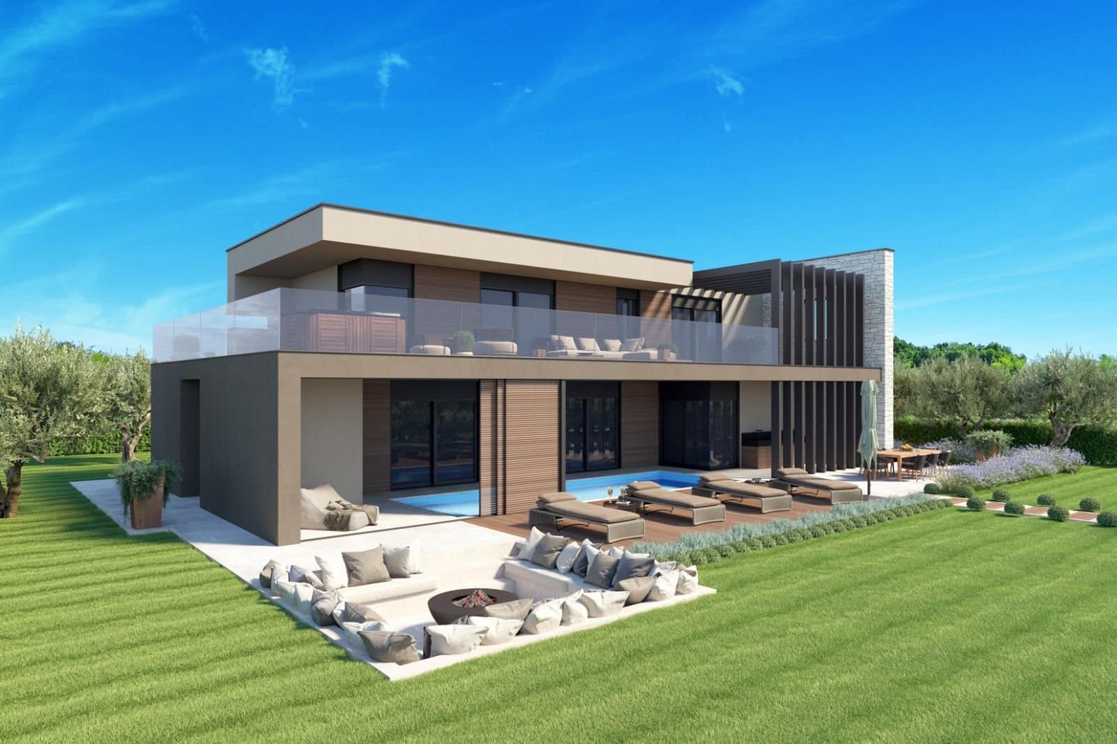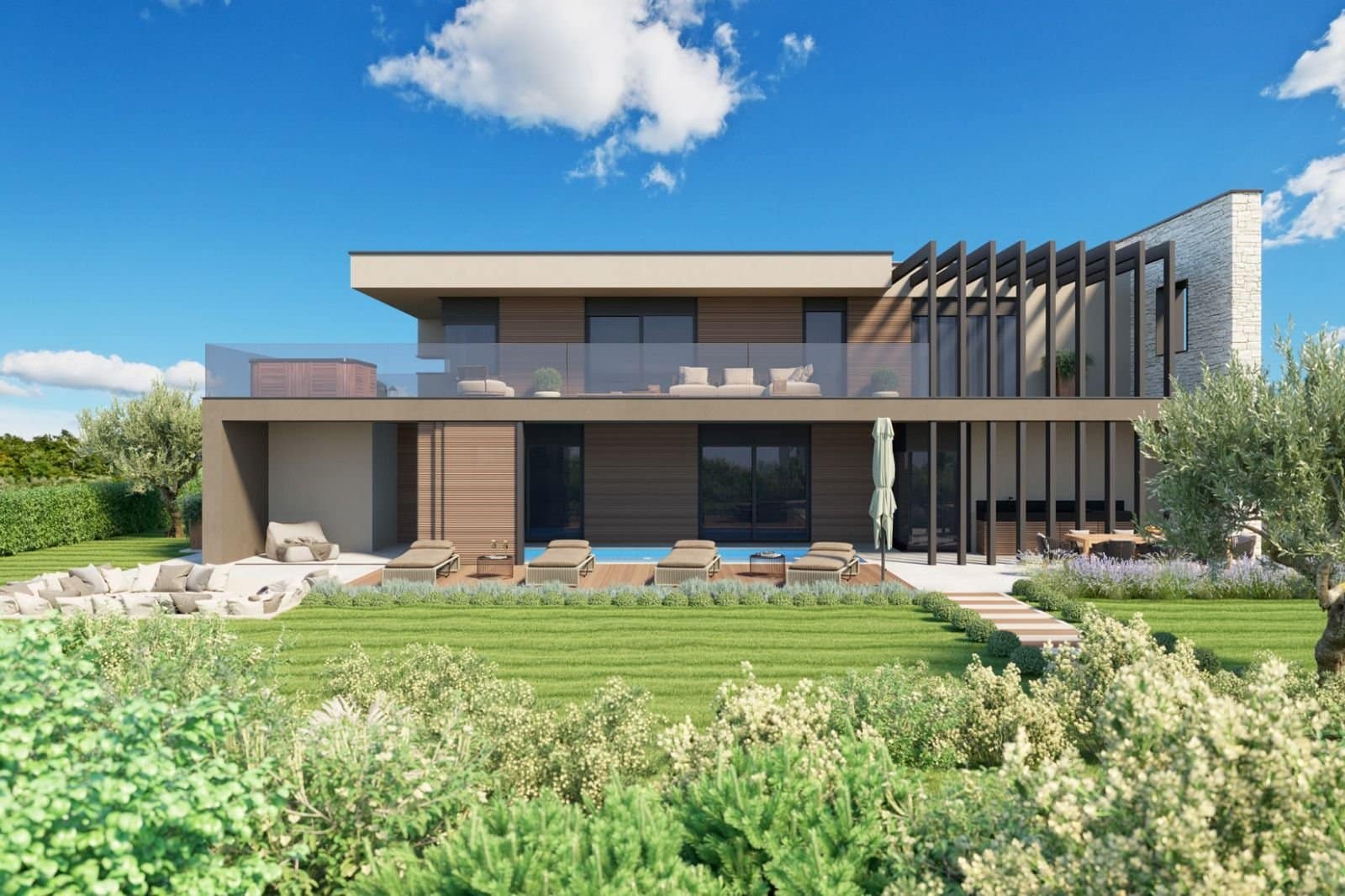 U-06 Neu gebaute Villa mit Pool – 210 m2 – Umgebung Buje – schöner Panorama- und Meerblick – zu verkaufen