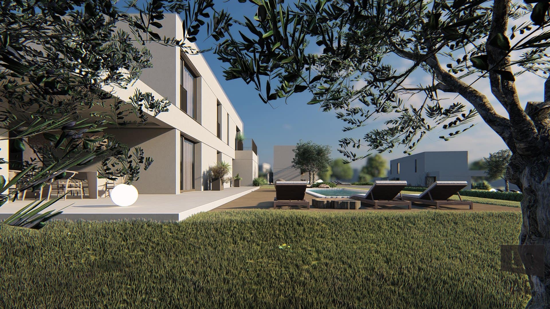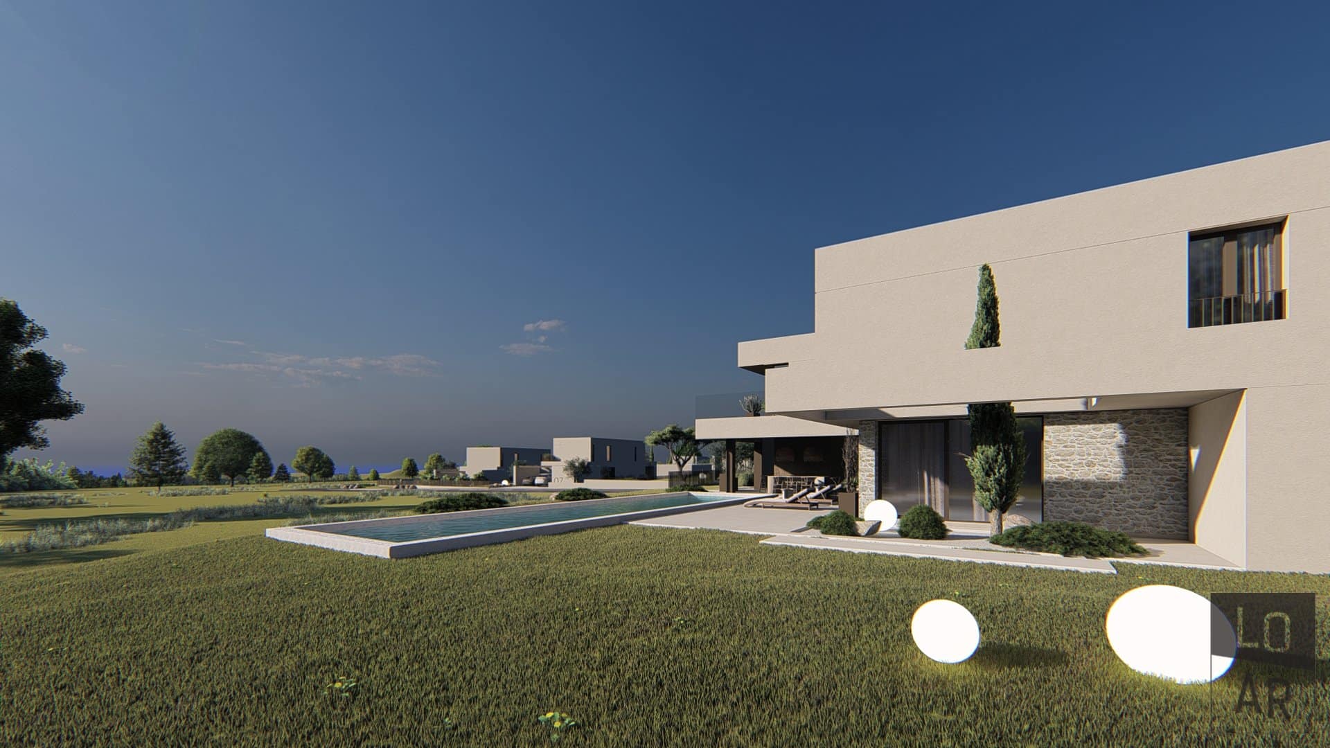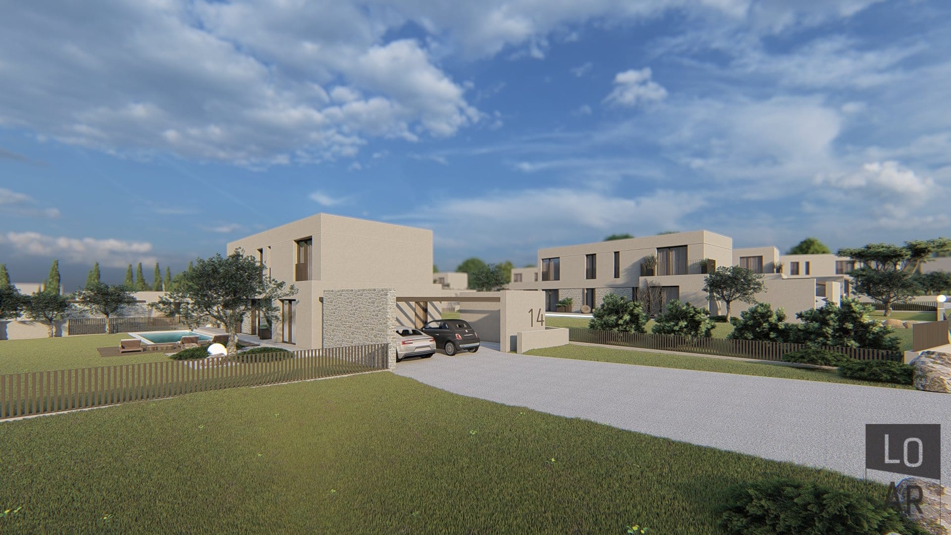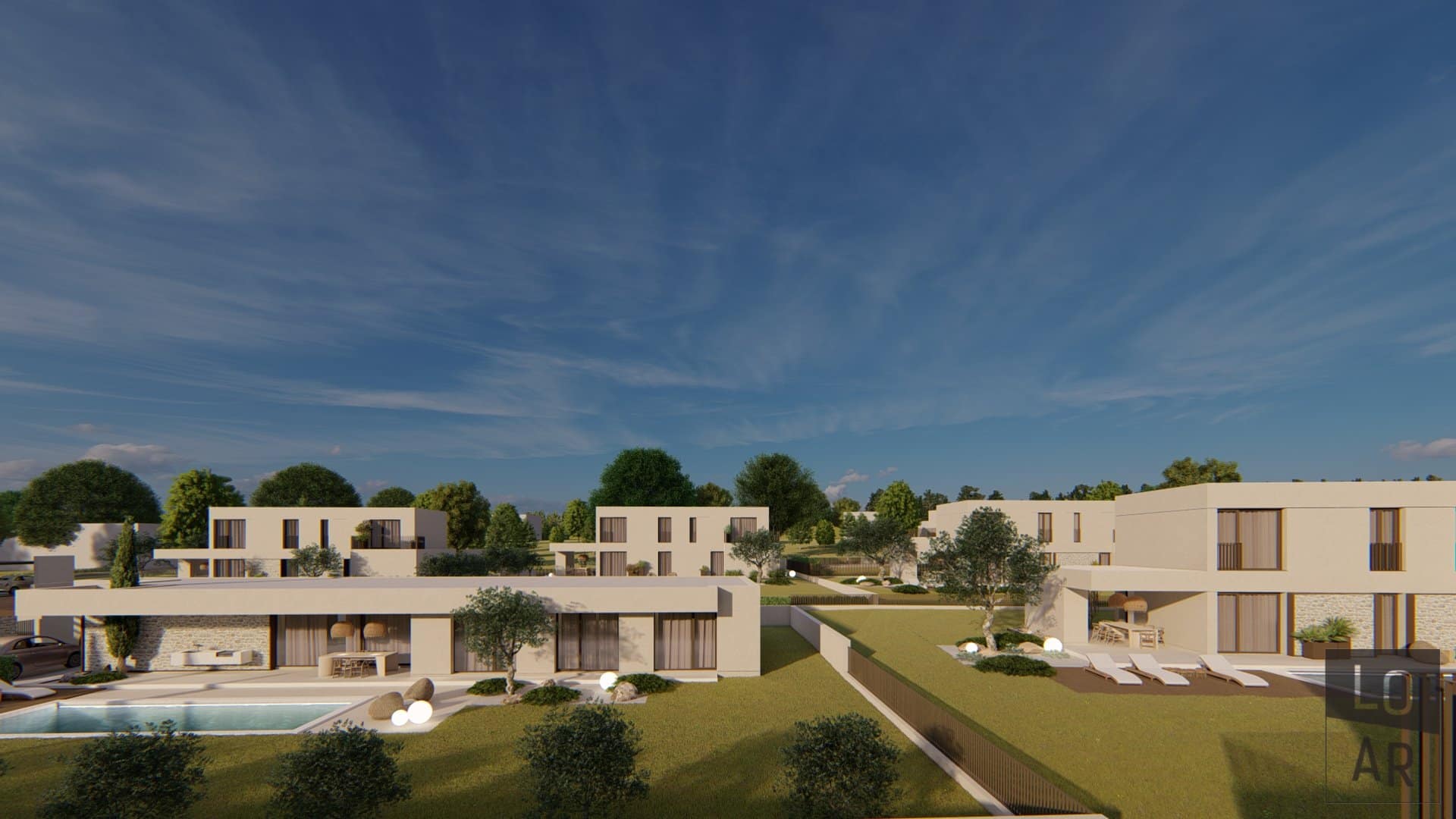 Anlage mit 14 modernen Villen mit großem Pool , ca. 7 km vom Meer und Porec Ort mit guter Infrastruktur, Geschäfte, Restaurants, Cafés, usw., ruhige Lage am Ortsrand, nur ca. 7 km vom Meer und Porec. 6 Bungalows und 8 Villen EG + 1. Stock, 8 Häuser bereits verkauft. Villa Erdgeschoss und 1. Stock, mit einer Nettowohnfläche von ca. 221 m². Das Grundstück hat eine Größe von 882 m², Pool mit 40 m². Erdgeschoss: Flur, Gäste-WC, Abstellraum, großes Wohnzimmer mit Küche und Essbereich, 1 Schlafzimmer mit Bad, 2 überdachte Terrassen 1.Stock: Flur, 3 Schlafzimmer jeweils mit Bad, Terrasse Hochwertige Ausstattung, Klima-Anlage und Fußbodenheizung. Baubeginn Herbst 2022, Fertigstellungszeit ca. 1 Jahr. Falls eine kroatische Firma kauft beträgt der Preis € 652.000,00, es fällt keine MwSt.(25%) an.