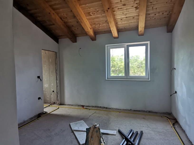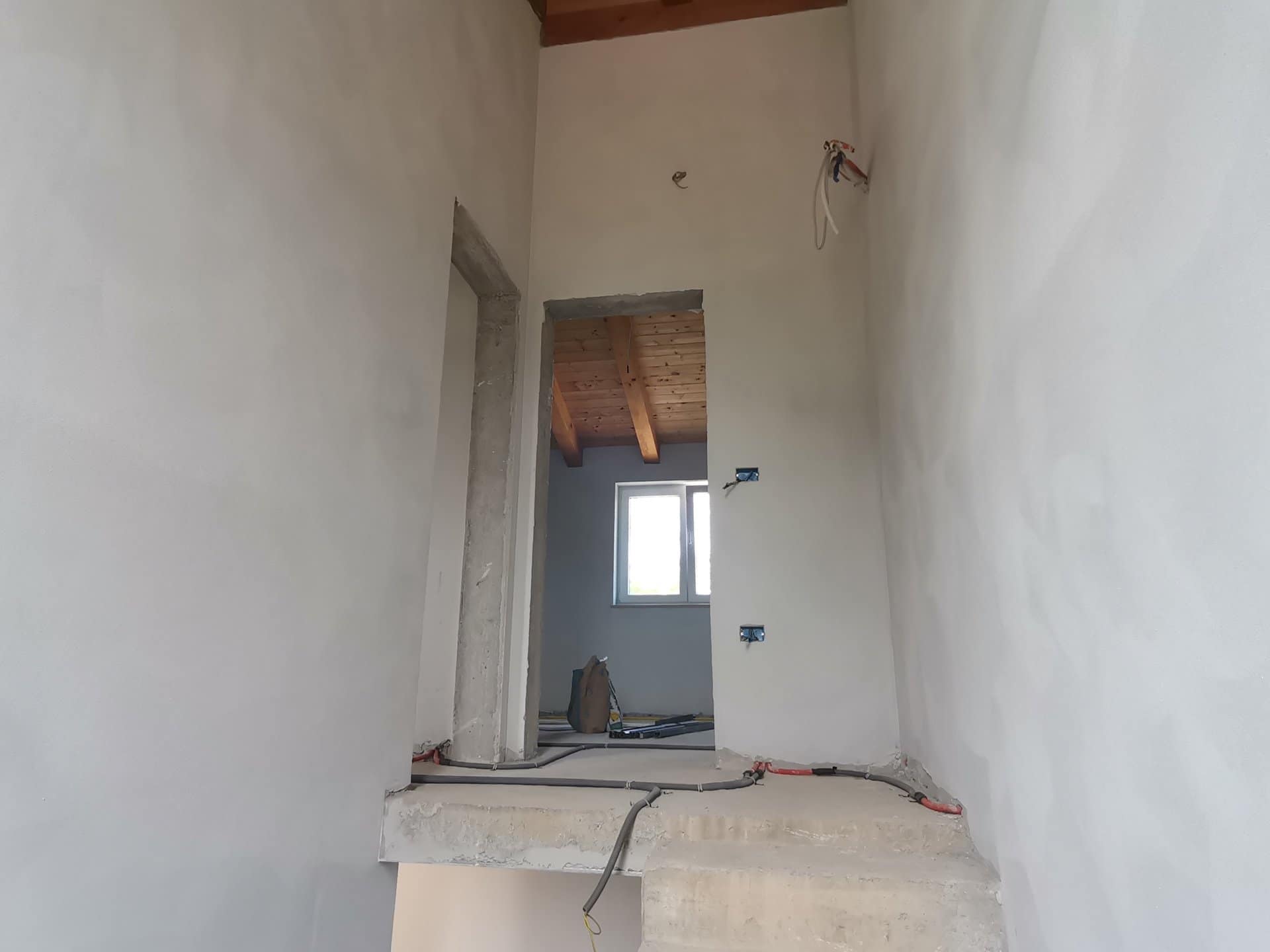 Freistehender Rohbau in ruhiger Lage Ca. 15 km vom Meer und ca. 4 km von Visnjan, einem Ort mit guter Infrastruktur (Restaurants, Cafés, Geschäfte, Post, Bank usw.) – ruhige Lage am Rand eines sehr kleinen Ortes – Umgebung Wiesen und Bäume – freistehender Rohbau mit Türen und Fenstern, ca. 115 m² Wohnfläche auf 2 Etagen: Erdgeschoss: Flur, Küche, Wohnzimmer, Bad, Terrasse. 1. Stock: 2 Schlafzimmer, 2 Bäder. Im Garten sind Pool und Garage geplant. Strom am Haus, kein Wasseranschluss, es müsste eine Zisterne gebaut werden. Das Grundstück hat eine Größe von 874 m²