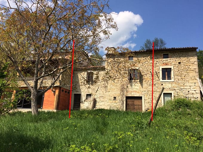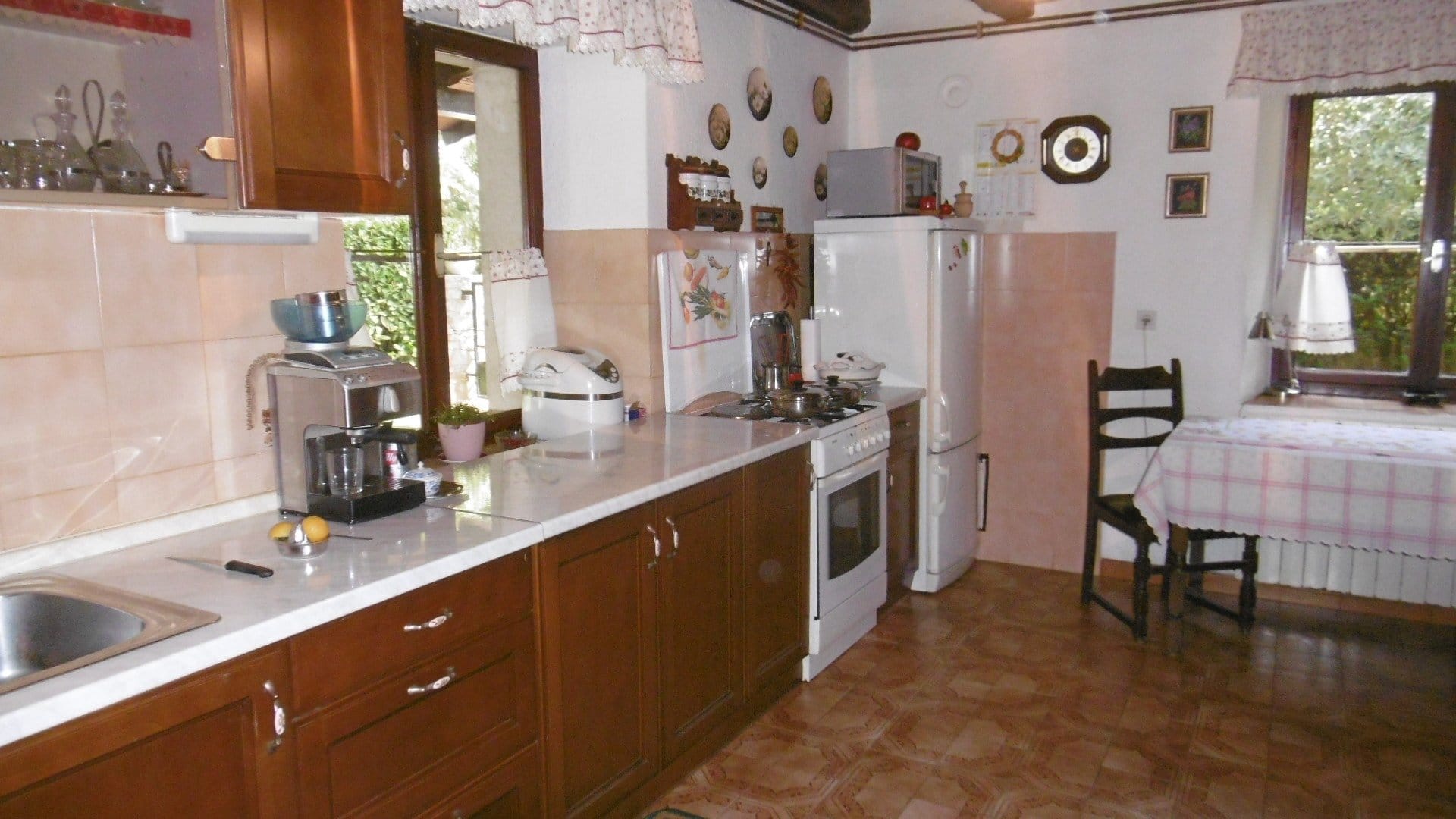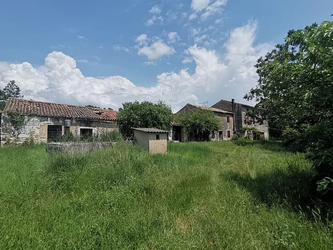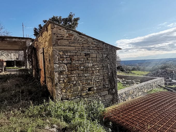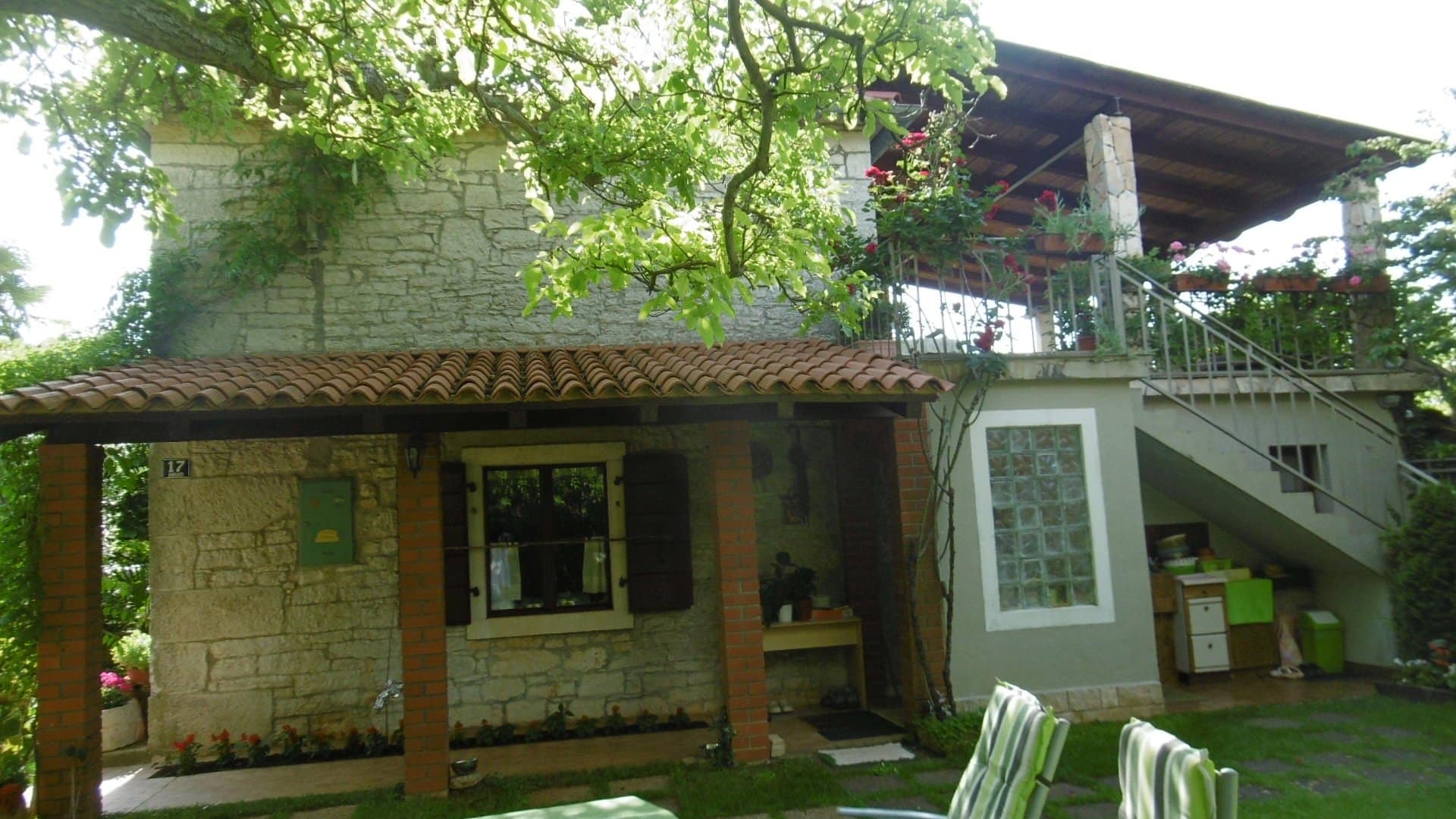 Anwesen mit 2 Natursteinhäusern, 4.550 m² Baugrund und ca. 77.000 m² landwirtschaftlicher Grund in einem kleinen Dorf, ruhige Lage Ca. 20 km von Porec und Meer, ca. 6 km von Visnjan, schöner alter Ort mit Geschäften, Friseur, Cafés, Restaurants, Sternwarte usw.. Das Anwesen liegt in einem kleinen Dorf in ruhiger Lage. Bewohnbares Natursteinhaus (Eckhaus) mit einer Wohnfläche von ca. 110 m². Erdgeschoss: Wohnzimmer mit offenem Kamin und Küche, Bad und kleiner Abstellraum. 1 Stock: 2 Schlafzimmer und eine große Terrasse. Im Erdgeschoss Fliesenböden, in den Schlafzimmern Holzböden. Zentralheizung. Um das Haus ist ein kleiner schöner Garten. Gegenüber vom Haus befindet sich ein renovierungsbedürftiges Natursteinhaus (Doppelhaushälfte) mit ca. 72 m² und ein kleines Wirtschaftsobjekt mit Obst- und Gemüsegarten. Daneben ist ein Baugrundstück von ca. 4.550 m² und im Anschluss daran sind die landwirtschaftlichen Grundstücke, der größte Teil in unmittelbarer Nähe, von insgesamt ca. 77.000 m²